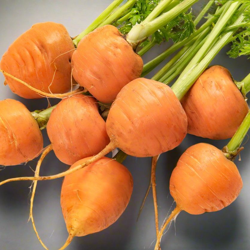 Adorable round carrot ideal for shallow soils and gourmet kitchen gardens.